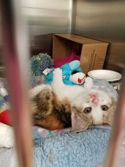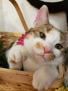 Found in a car with a degloved tail at only 4 weeks old, she required intense medical care for the first 6 months of her life, including having her tail amputated and surgery/procedures for eyelid agenesis. Despite her challenges, Pawla has become a beloved member of the Just For Cats family. Now as an adult cat, she works around the hospital and even has a favorite task - making copies!